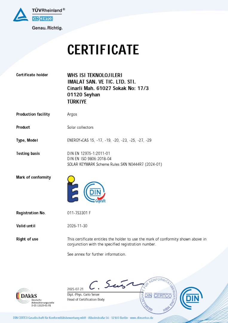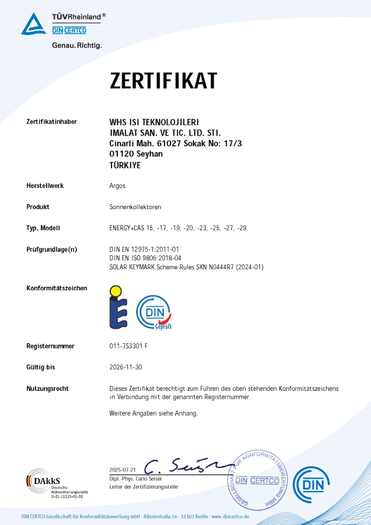 You can view our certificates, which are applicable to the production of our solar-energy systems, single-coil and double-coil boilers, buffer tanks, and our other products.