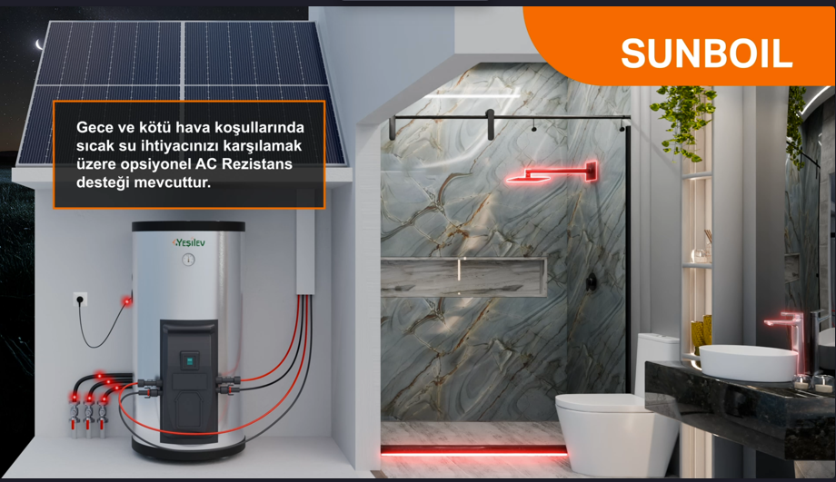 • Direct DC Heating: The direct current from photovoltaic modules is used to heat the water. No inverter or battery is required, making the system easy to deploy while reducing cost and complexity.